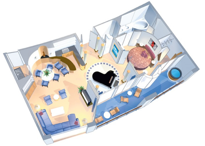 OS - Owner’s Suite s balkónom 47 m² + balkón s vírivkou 6 m². 10. paluba. Max 4 osoby. Výhody Suite. 7 903 € 7 903 € za osobu