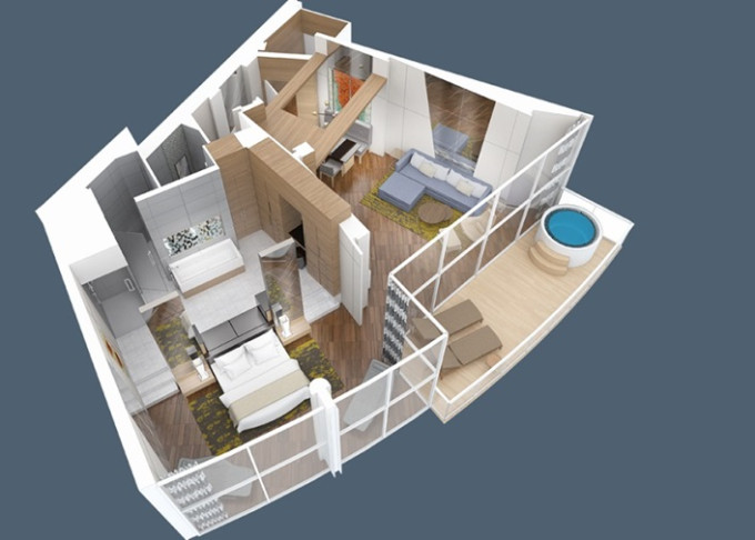 OP - Owner's Panoramic Suite 100 m² + balkón 15 m² s vírivkou. 2-podlažný apartmán. 17. paluba. Max 4 osoby. Výhody Royal Suite Star Class. 16 197 € 5 399 € za osobu