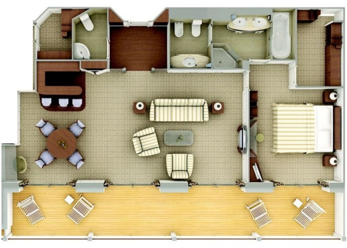 SL - Silver Suite 61-65 m² (vrátane verandy). 7. paluba. Max 3 osoby. 52 400 € 26 200 € za osobu