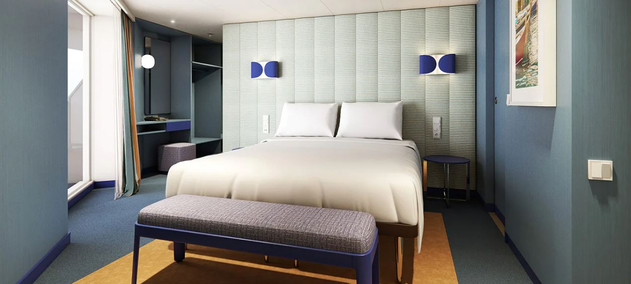- Ubytovanie v kajute vybranej kategórie. Základné vybavenie: kúpeľňa s WC a sprchovacím kútom, 2 lôžka spojiteľné do manželskej postele, skrine, nočné stolíky, toaletný stolík a stolička, nastaviteľná klimatizácia, interaktívna satelitná TV s plochou obrazovkou, trezor, sušič na vlasy, uteráky a posteľné prádlo, Wi-Fi pripojenie (za poplatok), 24/7 kajutová služba (za poplatok).